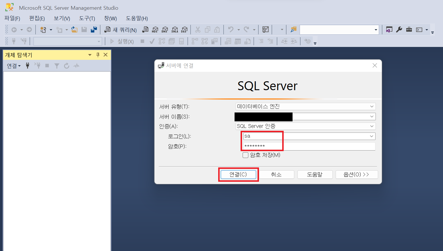 1. ssms 로그인을 해준다.