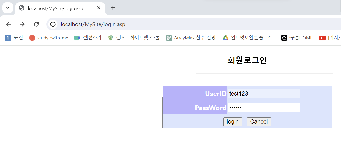 로그인 페이지 (http://localhost/MySite/login.asp ) 를 완성해주면 된다.
