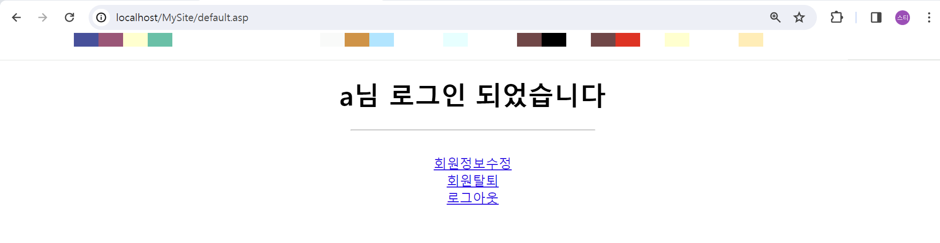 이를 이용해 로그인을 성공했을 때 접속되는 기본사이트(default.asp)를 만든다.