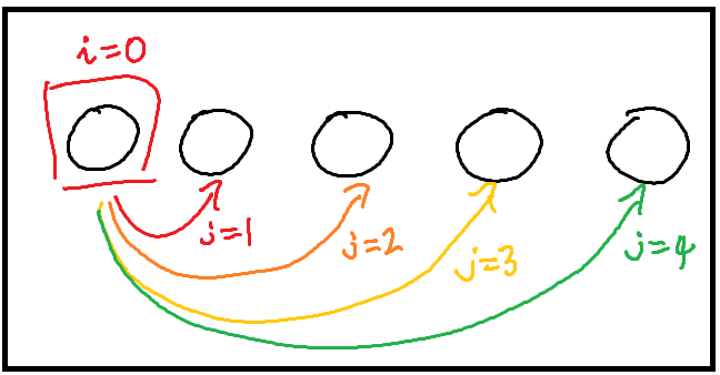 i=0 일 동안 j는 1부터 4의 값을 가져야 하고,