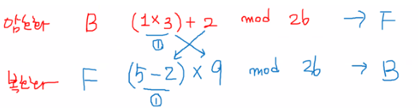 (곱셈키와 26)을 확장 유클리드 알고리즘에 넣는다는 것만 기억하자.