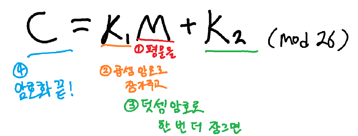 덧셈 암호 방식과 곱셈 암호 방식을 모두 쓴 암호 방식이다.