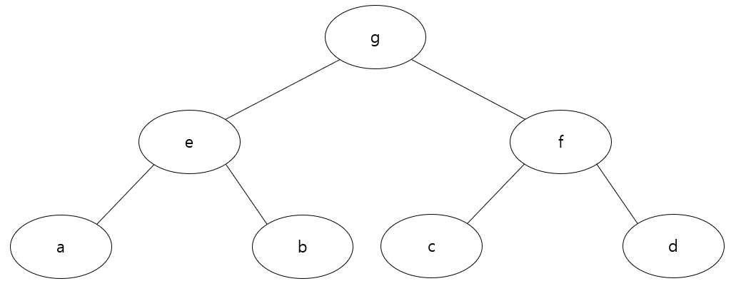 이제 전체 트리를 기준으로 왼쪽에 있는 노드는 순회를 마쳤으므로 루트노드 g로 가준 뒤,