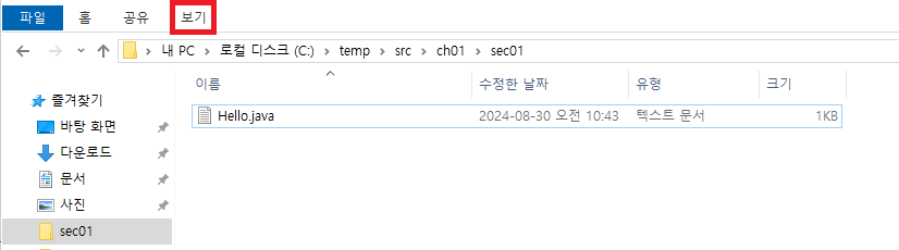 만약 .java로 저장해주었는데도 유형이 텍스트 문서로 뜬다면
