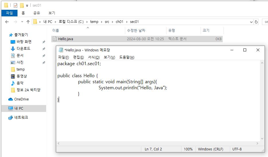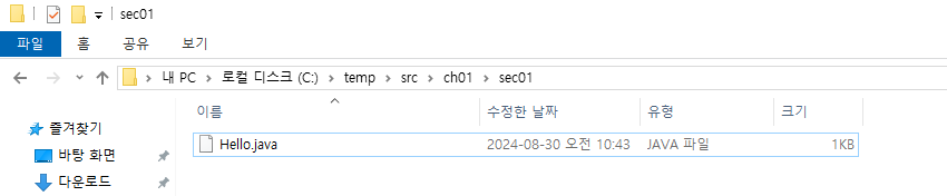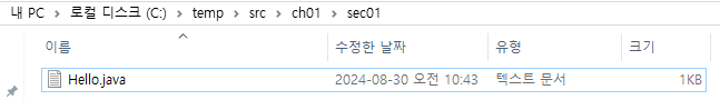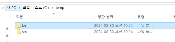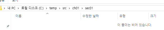 5. c 드라이브 밑에 temp 만들고 그 밑에 src , ch01, sec01 폴더 생성