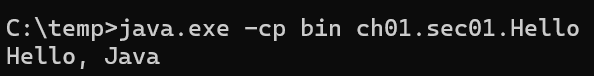 javac.exe -d bin src/ch01/sec01/Hello.java