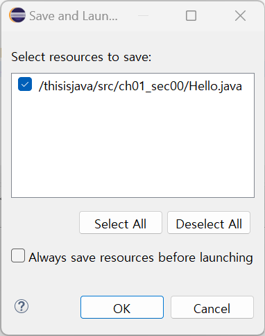 만약 이런 창이 떴다면, 수정 후에 저장을 하지 않고 실행하려해서 뜨는 창이므로 OK 하고 넘겨주면 된다.