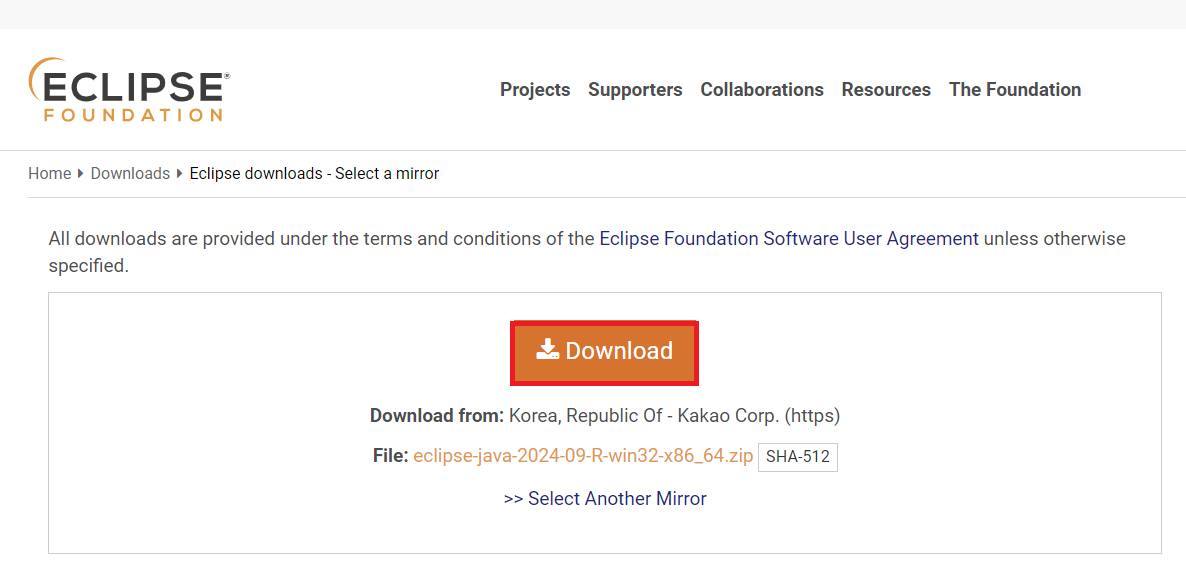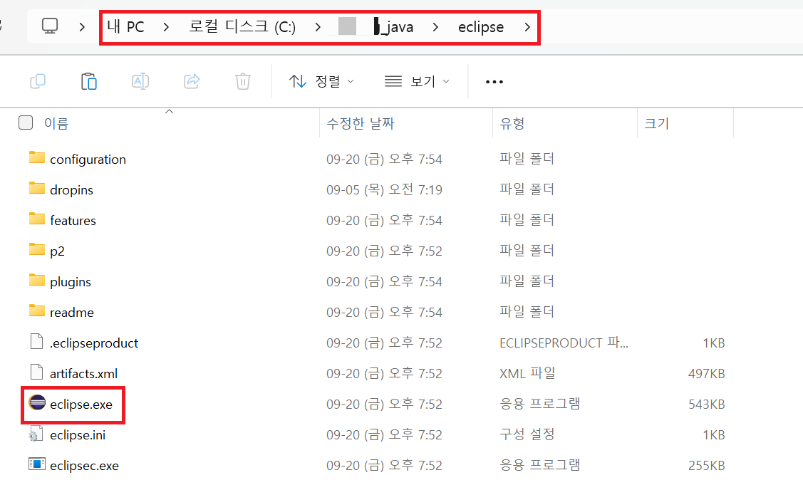 앞으로 eclipse.exe를 실행해주려면 이 경로로 들어와야 하기 때문에 알기 쉬운 경로에 압축을 풀어주는 것이 좋다.