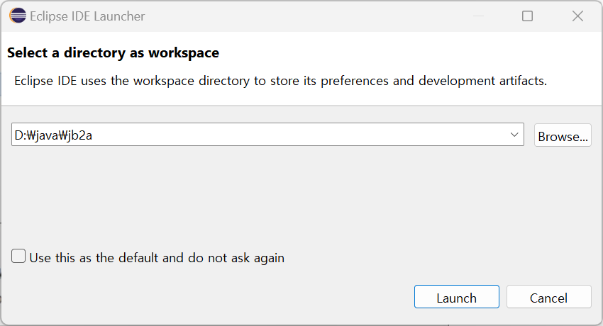 실행하면 workspace를 정하라는 창이 먼저 뜬다.