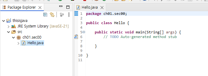 이렇게 경로를 따라가보면, Hello.java 파일을 볼 수 있다.
